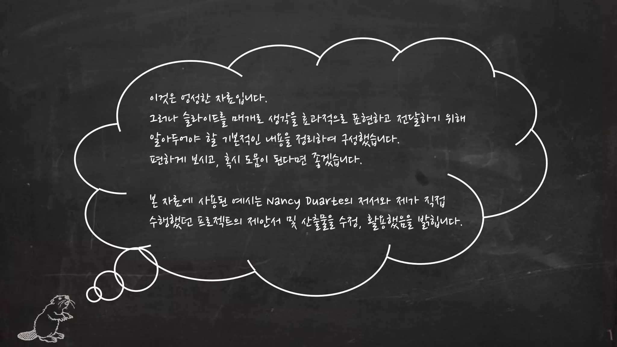 본 자료에 사용된 예시는 Nancy Duarte의 저서와 제가 직접