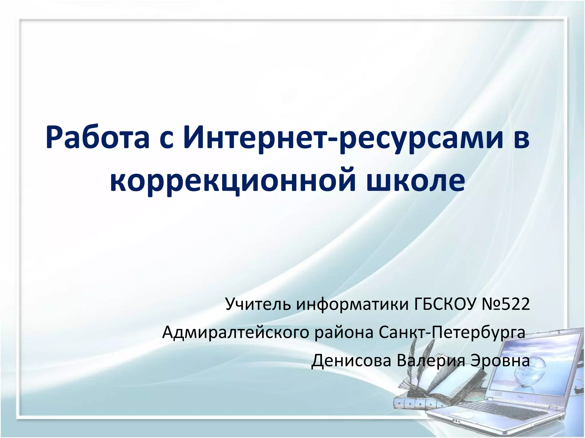 Документ описывает работу учителя информатики в коррекционной школе, включая создание электронных плакатов и ментальных карт для различных предметов. В нем также упоминается использование онлайн-тестирования для уроков математики. В заключение, автор благодарит за внимание.