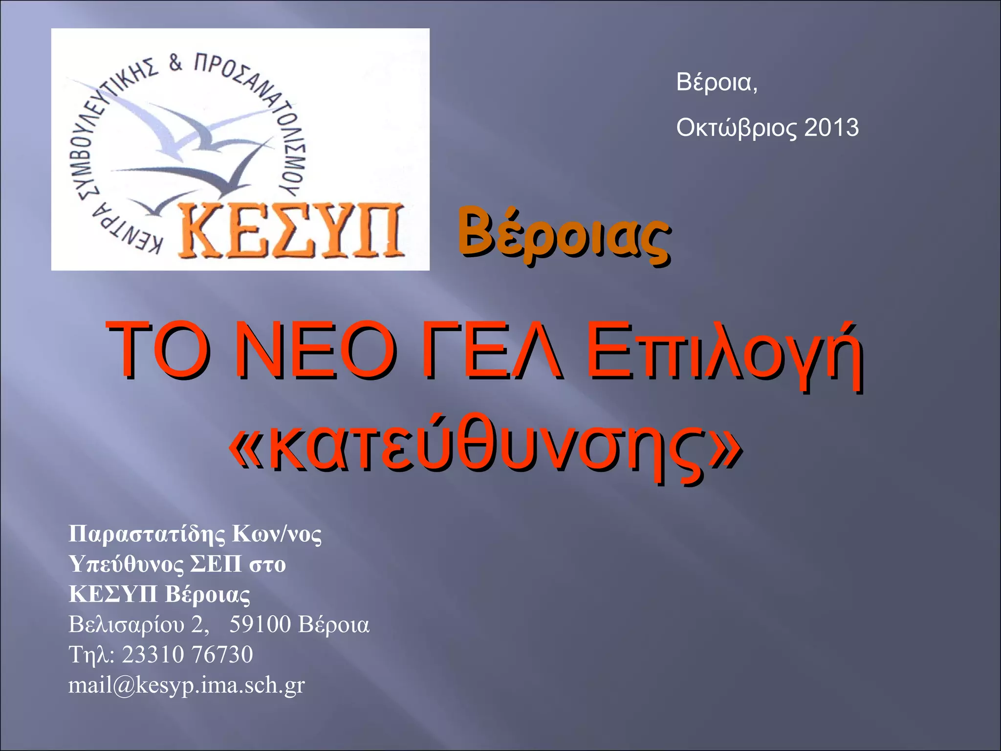 επαγγελματικού προσανατολισμού στην δευτεροβάθμια