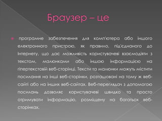 посилання на інші веб-сторінки, розташовані на тому ж вебсайті або на інших веб-сайтах. Веб-переглядач з допомогою