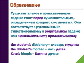 Интересная презентация по английскому языку для школьников и студентов на тему "Притяжательный падеж"