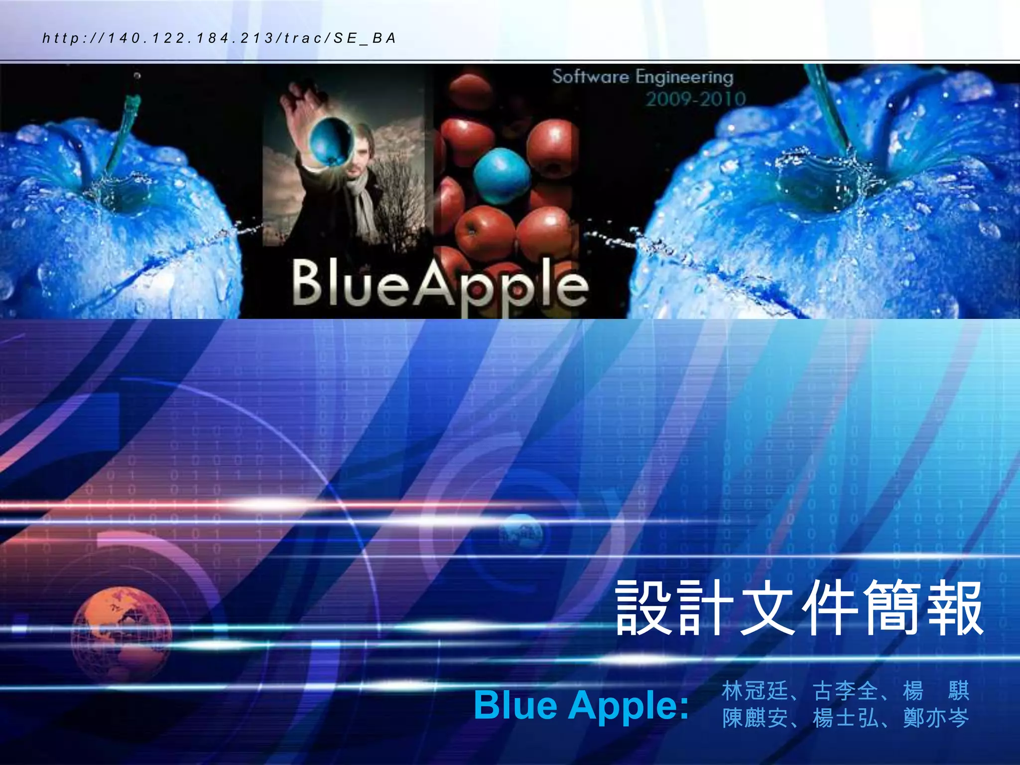 http://140.122.184.213/trac/SE_BA設計文件簡報Blue Apple: 林冠廷、古李全、楊 騏陳麒安、楊士弘、鄭亦岑