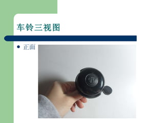 文档详细解析了自行车车铃的结构,包括正面、侧面和背面的三视图。它列出了拆解车铃的步骤,逐步指导如何去除铃盖和振铃锤,以及揭示内部传动结构。