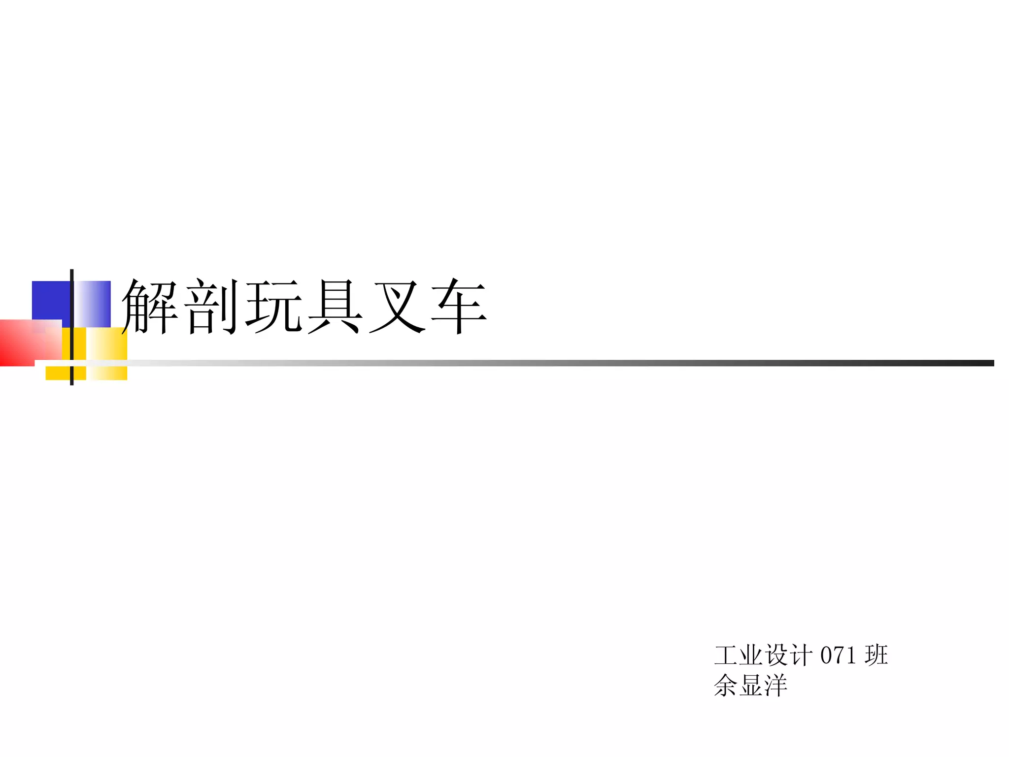 文档描述了一个解剖玩具叉车的过程,主要包括产品展示和拆卸过程中的观察。通过拆卸,作者不仅重温了童年的快乐,还深入理解了玩具的驱动原理和部件功能。作者认为成人也应参与玩具的探索,以促进对生活的理解和创造力的激发。