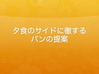 提言 ! 日本的な食事にわざわざパンを組み込む必要が ない&その需要がない。 提案 ! 洋食におけるパンの重用性に着目する。また、 パンのポテンシャルの追求。