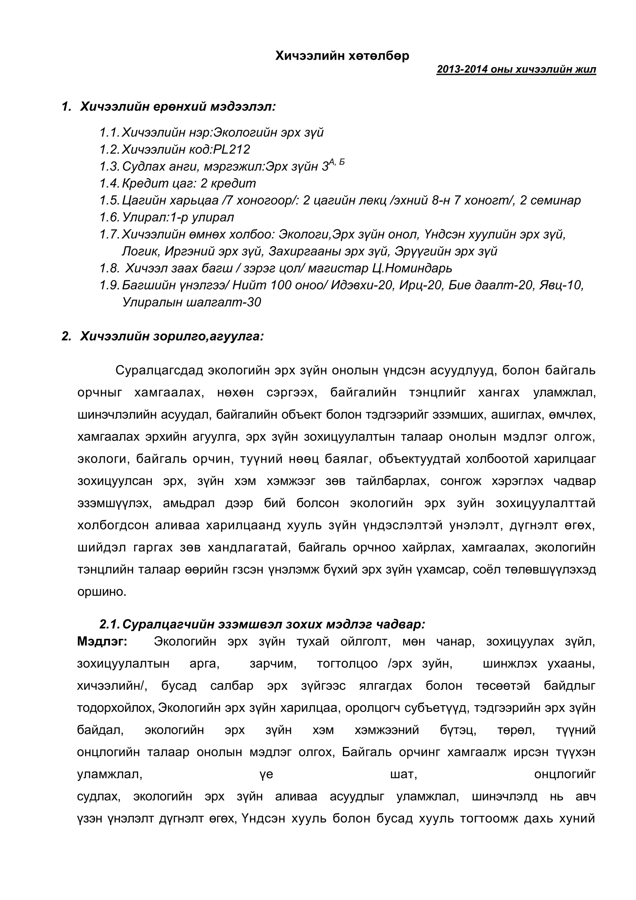1.1. Хичээлийн нэр:Экологийн эрх зүй