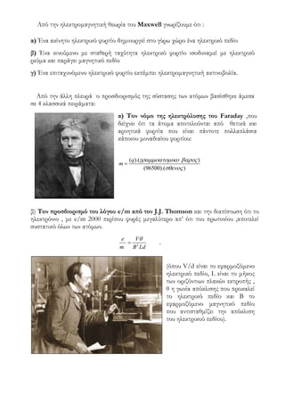 β) Τον προσδιορισμό του λόγου e/m από τον J.J. Thomson και την διαπίστωση ότι το