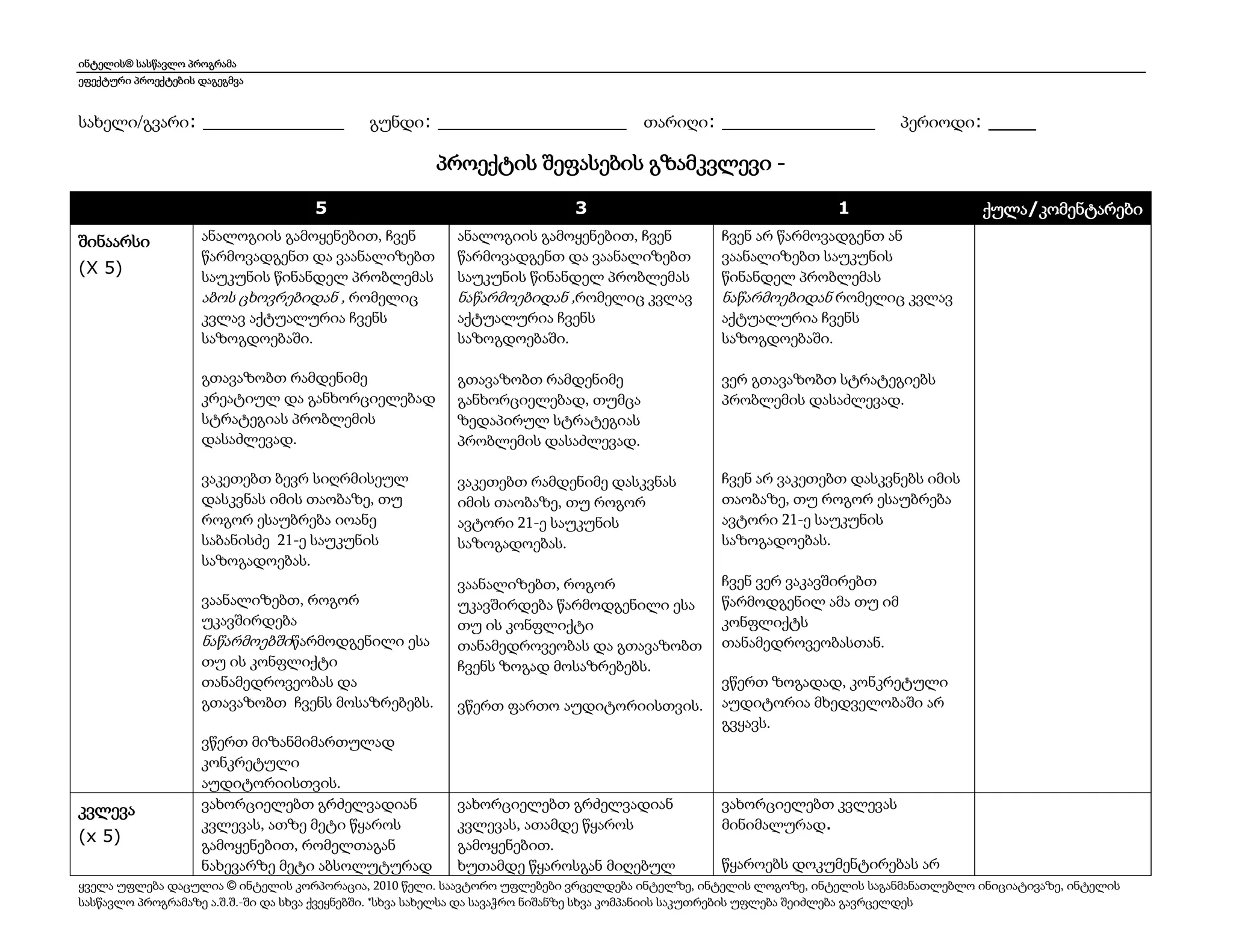პროექტის შეფასების გზამკვლევი 5