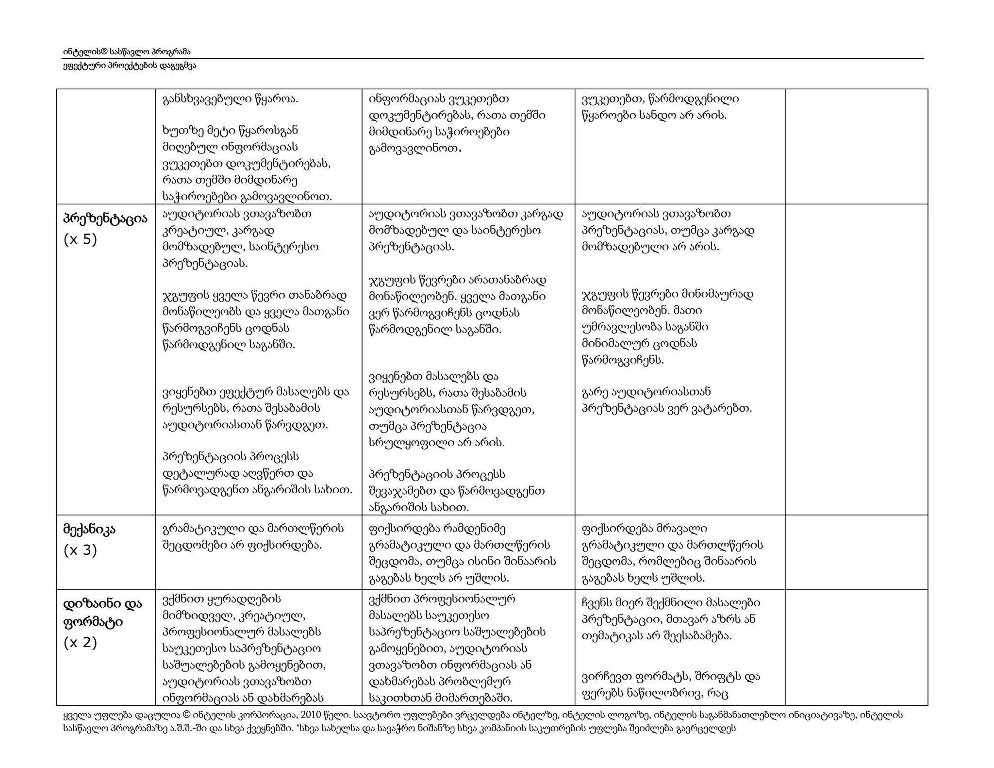 პრეზენტაციის კრიტერიუმები DOC