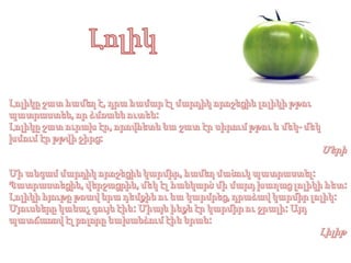 պարարտացնել կամ գոմաղբ լցնել: Լոլիկի ամենահամեղ տեսակն Անահիտն է: Լոլիկն