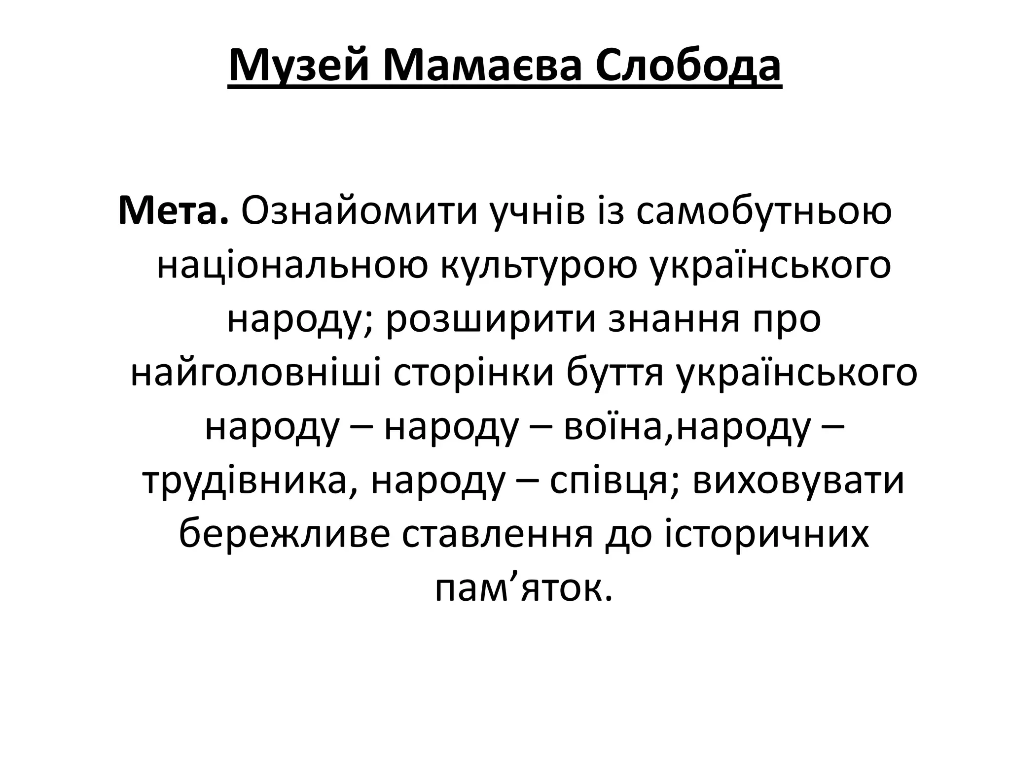 Мета. Ознайомити учнів із самобутньою