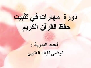 "التلوة ، التستماع للقرآن ،الحفظ ،التثبيت..".