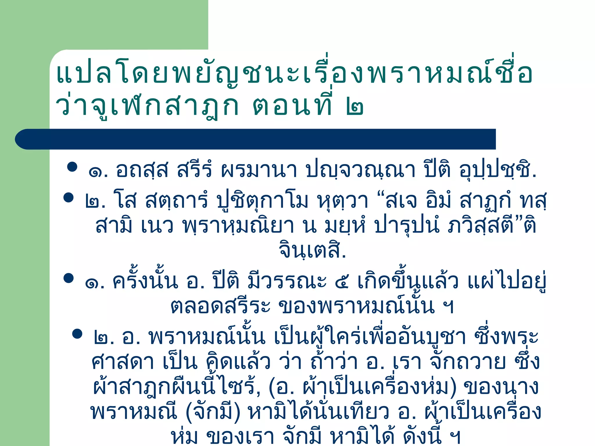 แปลโดยพยัญชนะเรื่องพราหมณ์ชื่อว่า จูเฬกสาฎก๒ PPT