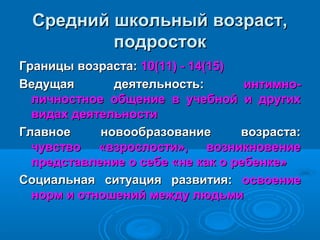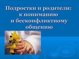 Документ обсуждает динамику отношений между подростками и родителями в возрасте 10-15 лет, акцентируя внимание на чувствах взросления и конфликтах, возникающих в связи с стремлением подростков к самостоятельности. Указывается на потенциальные проблемы, такие как снижение самооценки и социальная дезадаптация, вызванные недопониманием и игнорированием потребностей подростков взрослыми. Рекомендуются способы улучшения коммуникации, включая доверие и эмоциональную близость.