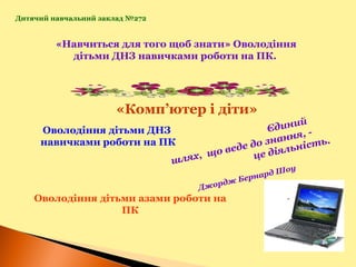 Ознайомлення дітей з комп'ютером і його доповненнями.