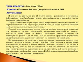 Сьогодні, перед вихователями постала серйозна проблема використання комп’ютера