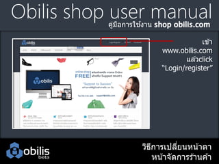 manual ้ คูมอการใชงาน ่ ื เข ้า www.obilis.com แล ้วclick “Login/register” วิธการเปลียนหน ้าตา ี ่ หน ้าจัดการร ้านค ้า