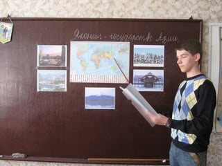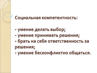 Документ описывает работу учителя географии и его роль в развитии поликультурной, коммуникативной, информационной, саморазвивающей и творческой компетентности учащихся. Учитель использует разнообразные методы, такие как ролевые игры и индивидуальные творческие задания, для стимулирования интереса и самостоятельной работы студентов. Важное внимание уделяется подготовке учеников к обучению на протяжении всей жизни и использованию новых технологий.