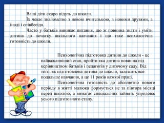 Відповідальність за те,яким буде шкільне майбутнє дитини в повній мірі