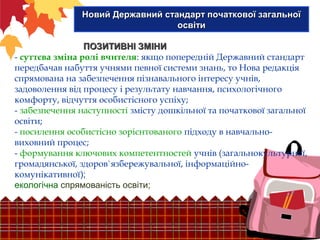 - суттєва зміна ролі вчителя: якщо попередній Державний стандарт