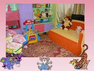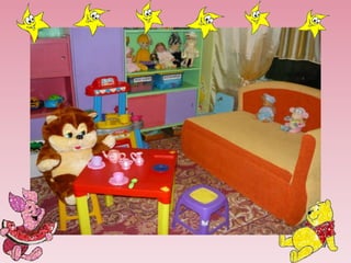 Документ описывает жизнь и деятельность детей в детском саду «Теремок» и их воспитателей. Упоминаются различные игровые зоны, занятия по развивающим играм и участие родителей в конкурсе. Воспитатели и няня заботятся о детях, создавая комфортную и веселую атмосферу.