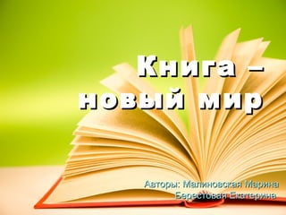 Книга под названием 'Новый мир' обсуждает важность чтения и его влияние на развитие мышления и творчества. Авторы подчеркивают, что книги помогают понять психологию, учат этикету и обогащают наш внутренний мир, позволяя нам погружаться в атмосферу различных эпох. Чтение способствует духовному и эмоциональному развитию, радует разнообразием сюжетов и персонажей.