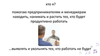 Документ описывает подход к формированию эффективных проектных команд, основанный на гипотезе Джека Уэлша о нормальном распределении сотрудников. Рассматриваются стратегии найма, увольнения и развития персонала, а также методы управления и влияния на сотрудников для повышения их продуктивности. Автор подчеркивает важность постоянного мониторинга результатов и быстрого реагирования на низкие показатели работы, а также активного поиска и удержания талантливых сотрудников.