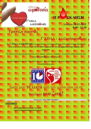 Το 1ο ΕΠΑΛ ΑΛΕΞ/ΠΟΛΗ ζαρ πποζκαλεί να ζςμμεηάζσεηε ζηην εθελονηική αιμοδοζία