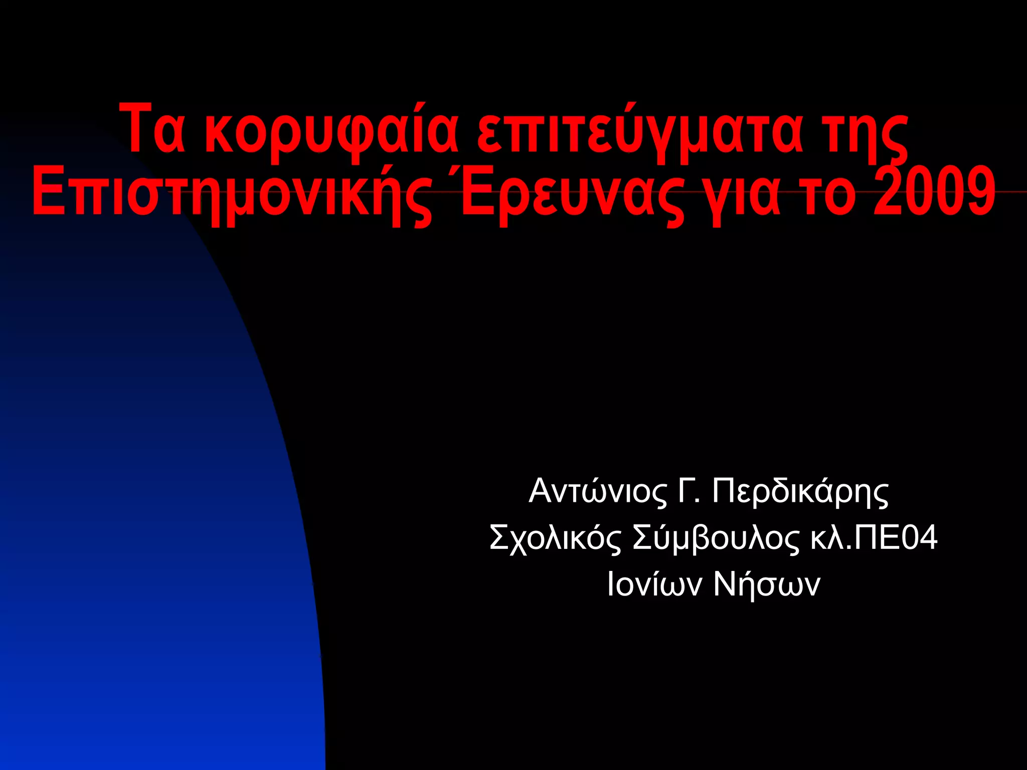 Προβληματισμός Οπωσδήποτε είναιαδύνατο να υπάρξει αντικειμενική και ουδέτερη αποτίμηση των σημαντικών επιστημονικών επιτευγμάτων μιας οποιασδήποτε χρονικής περιόδου. Όσοι το επιχειρούν κινούνται ασφαλώς με ανταγωνιστική λογική και η επιλογή γίνεται πολλές φορές με αδιαφανή ή ιδιοτελή κριτήρια (πανεπιστημιακά, οικονομικά, γεωγραφικά…) Ωστόσο αξίζει να γνωρίζουμε ποιες από τις πολυάριθμες αξιόλογες έρευνες, άλλοι συνάδελφοί μας, συντάκτες εγκύρου επιστημονικού περιοδικού, ανέδειξαν ως «κορυφαία επιτεύγματα του 2009».
