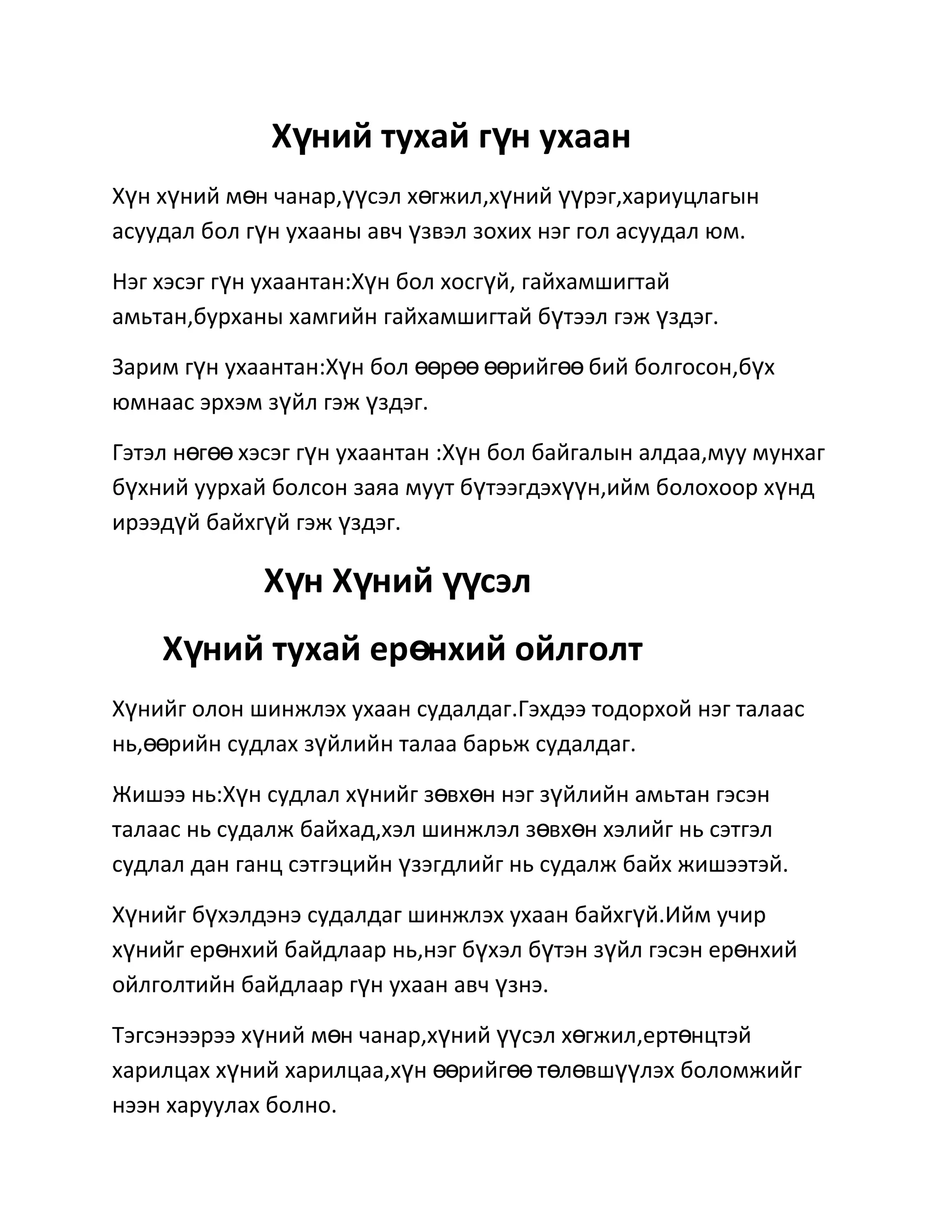 Хүн хүний мөн чанар,үүсэл хөгжил,хүний үүрэг,хариуцлагын