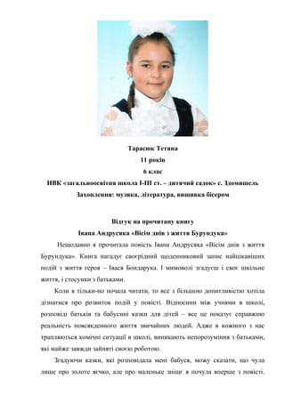 гадаю, що повість І. Андру-сяка «Вісім днів з життя Бурундука» можна