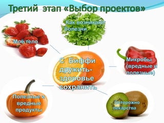Проект «с биффи дружить – здоровье сохранить» направлен на формирование у учащихся основ рационального питания и здорового образа жизни через экскурсии, беседы, эксперименты и творческую деятельность. В рамках проекта акцентируется внимание на полезных и вредных продуктах, их влиянии на здоровье, а также проводятся различные мероприятия для активизации познавательной деятельности детей. Цель проекта заключается в создании условий, способствующих развитию потребности в здоровом образе жизни и повышении уровня знаний о питании.