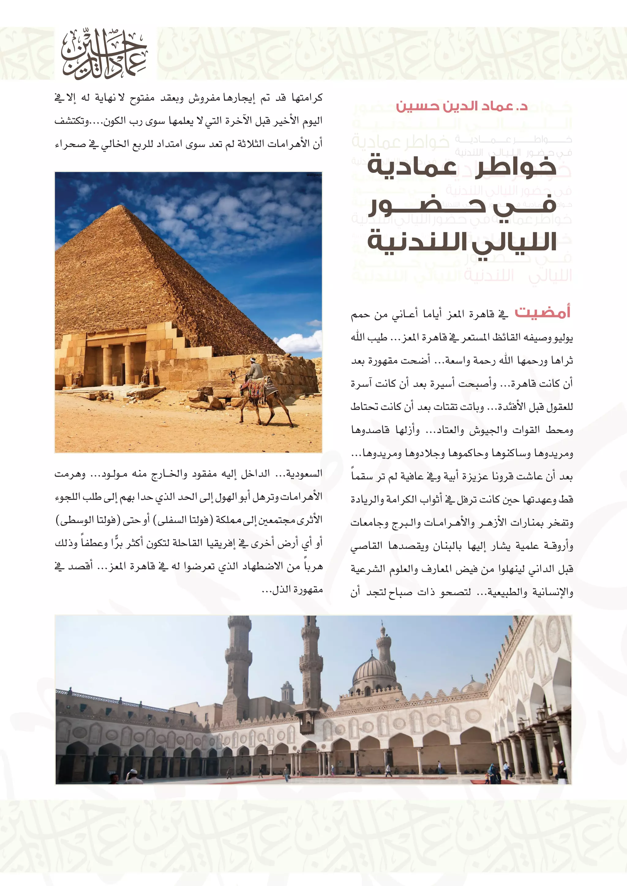 يتناول النص الأوضاع الاجتماعية والاقتصادية والسياسية في مصر، متطرقاً إلى الانحدار الثقافي والاحتلال الفكري للبلاد وتأثيره على المواطنين. يعبر الكاتب عن إحباطه من الفساد المستشرى في المجتمع وسلطة الحكومة التي لا تعترف بمشكلاتها. كما يشير إلى العذاب العام والمعاناة التي يواجهها الشعب، محذراً من التوجهات السلبية التي تؤدي إلى تدني مستوى المعيشة.