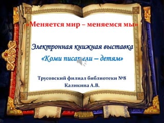 Электронная книжная выставка 'Коми писатели – детям' направлена на воспитание любви к чтению и патриотизму среди детей, знакомя их с произведениями коми писателей. Документ описывает творческую деятельность авторов, таких как Пантелеймон Образцов и Елена Козлова, и их вклад в детскую литературу. Выставка предлагает читателям уникальное путешествие в мир коми литературы и культуры через стихи и рассказы, отражающие красоту родного края и детские переживания.