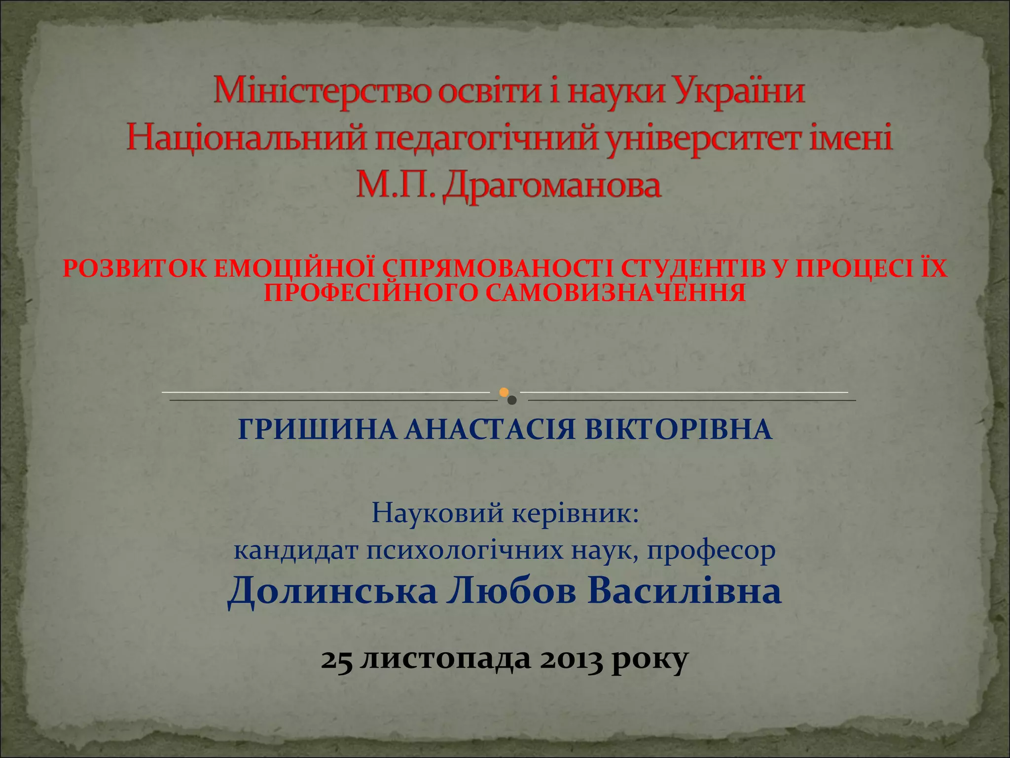 моя презентация диссертации "Развитие эмоциональной направленности студентов в процессе их профессионального самоопределения"