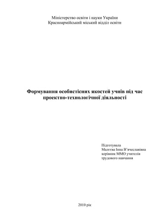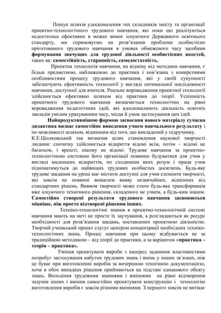 багатьом, і врешті, нікому не відомі. Трудове навчання за проектнотехнологічною системою його організації повинно будуватися для учня у