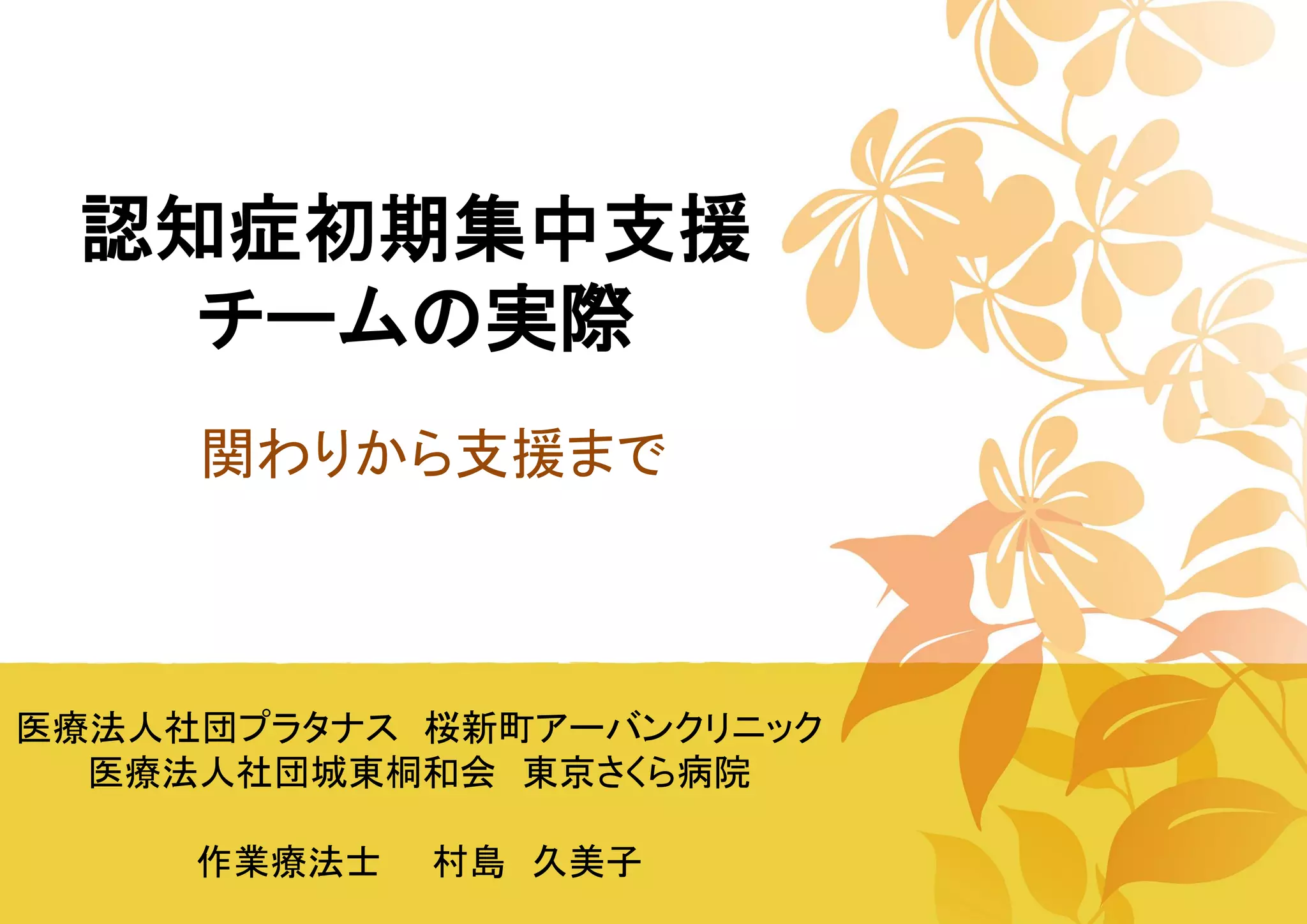 認知症初期集中支援 チームの実際 関わりから支援まで 医療法人社団プラタナス 桜新町アーバンクリニック 医療法人社団城東桐和会 東京さくら病院 作業療法士 村島