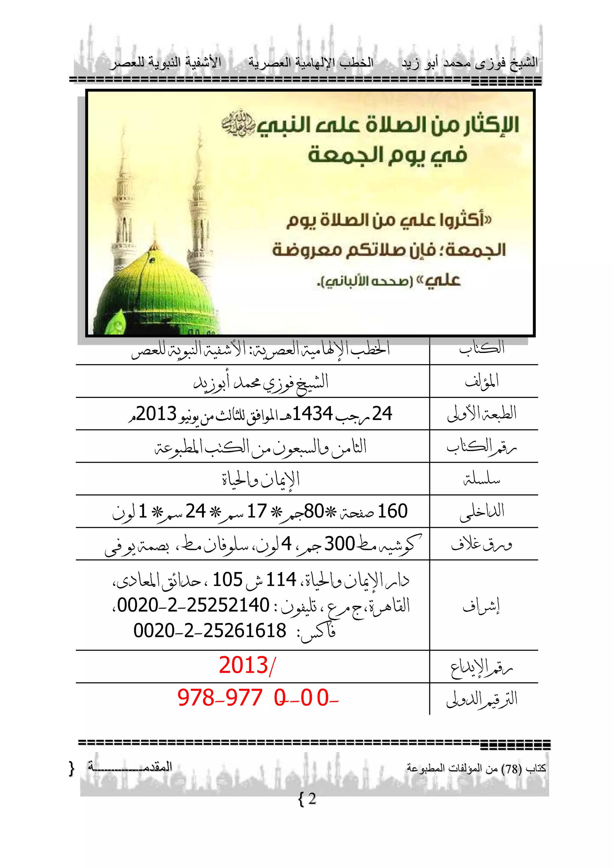 وقد رأينا إتماماً للمنفعة أن نطبعها في كتاب ليعم بها النفع، بعد أن نسخناها على اسطوانة مدمجة بالصوت والصورة سى دى (CD)، والله أسأل أن يجعل هذا العمل خالصاً لوجهه الكريم، ومؤازرة لنبيه الرءوف الرحيم.