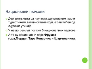 гора,Ђердап,Тара,Копаоник и Шар-планина.