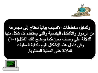تتناول الوثيقة موضوع كتابة الخطوات الخوارزمية التي تمثل مجموعة من القواعد لحل المشكلات بدقة. كما تعرض كيفية حساب مساحة المستطيل كمثال على الخوارزمية، بالإضافة إلى أهمية مخططات الانسياب كتمثيل بياني للمراحل والخطوات في البرمجة. يتم التأكيد على خصائص الخوارزمية السليمة وضرورة توثيق منطق البرنامج.