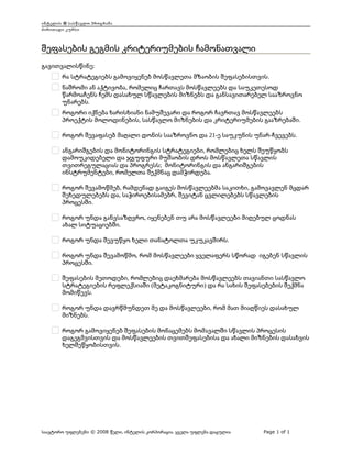 შეფასების გეგმის კრიტერიუმების ჩამონათვალი