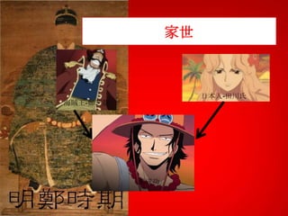 该文档讨论了郑成功及其家族的历史背景和事件,包括反清复明的尝试以及郑成功在台湾的统治。文档提到郑成功于1662年去世后,他的儿子郑经和孙子郑克澍在权力斗争中的角色。最后,郑克澍被立为延平郡王,标志着郑氏家族的权力变化。
