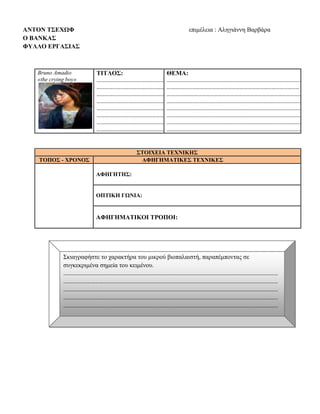 Ο Βάνκας , Άντον Τσέχωφ, Λογοτεχνία Α Γυμνασίου Φύλλο εργασίας PDF