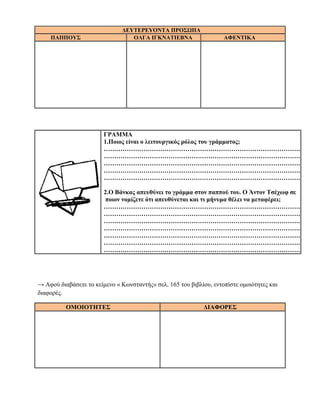 → Αθού δηαβάζεηε ηο θείκελο « Κφλζηαληής» ζει. 165 ηοσ βηβιίοσ, εληοπίζηε οκοηόηεηες θαη
