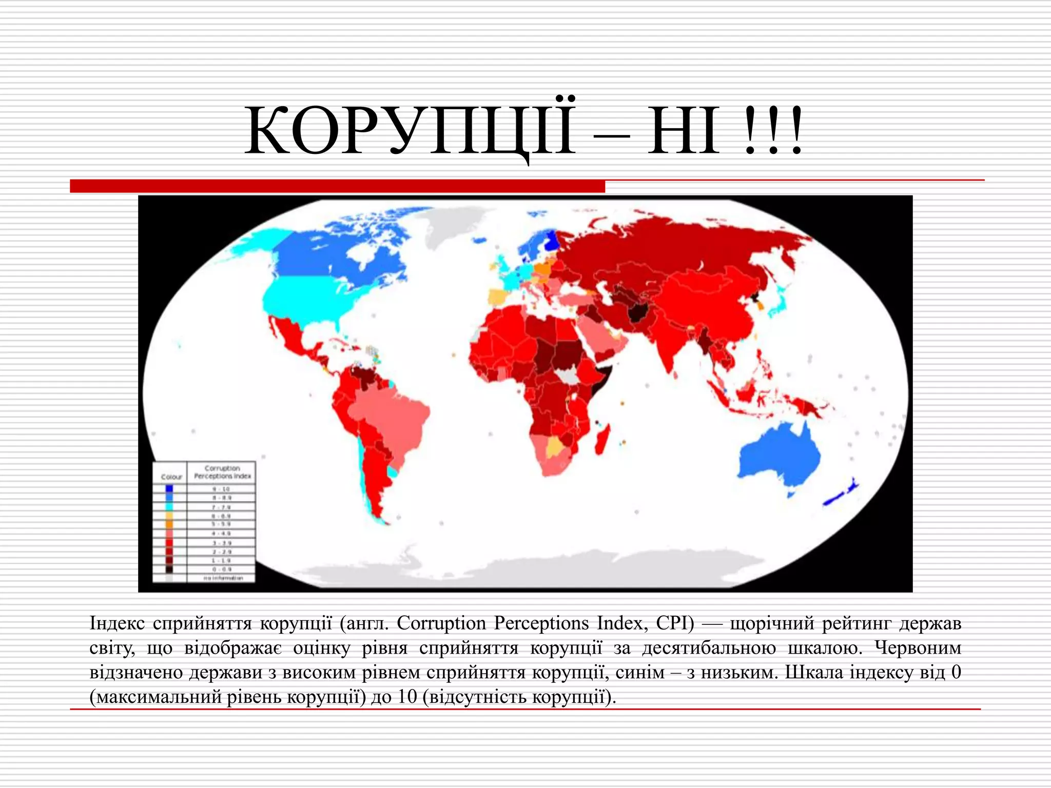 (максимальний рівень корупції) до 10 (відсутність корупції).