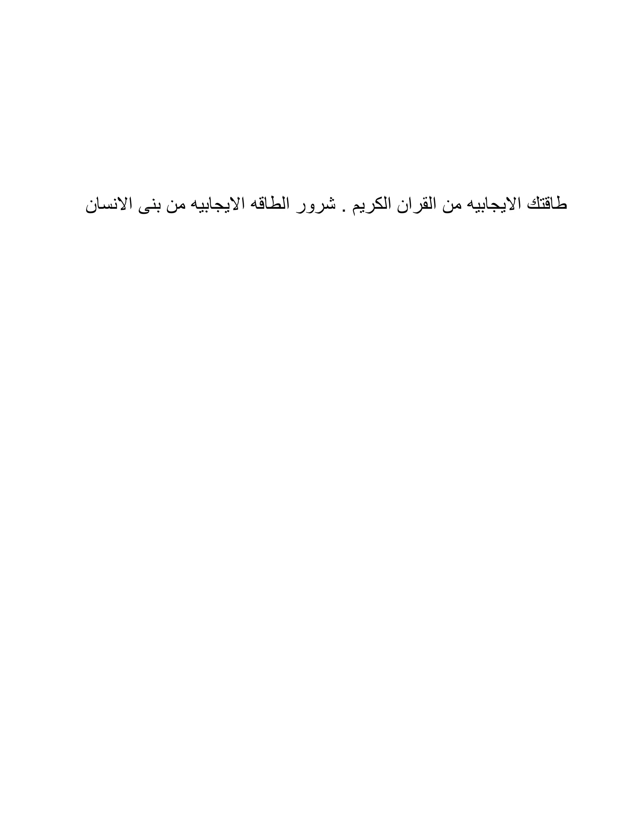 يتناول الوثيقة أهمية الطاقة الإيجابية في القرآن الكريم وتأثيرها على النفس الإنسانية، مسلطًا الضوء على ضرورة تزكية النفس وتجنب الطاقة السلبية التي تنشأ من الغضب والخوف وارتكاب المحارم. كما يبرز كيف أن الالتزام بالقرآن والدعاء يمكن أن يحصن الإنسان ضد الشياطين ويزيد من صحته النفسية والبدنية. يُعتبر الحفاظ على العادات الصحية والروحية جزءًا أساسيًا من النجاح والسعادة في الحياة.