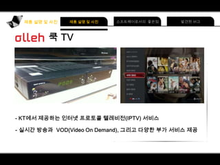 IPTV는 서비스 제공자(KT)가전송되는 모든 내용을 디지털화하여 사용자