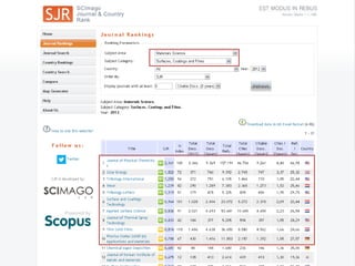 Документ содержит информацию о ведущих зарубежных научных журналах в области инженерии поверхности, включая их импакт-факторы и рейтинги. Упоминаются такие ресурсы, как JCR и SJR для оценки влияния журналов. Также предоставлены ссылки на журналы и информация о доступе к ним через научную библиотеку БНТУ.