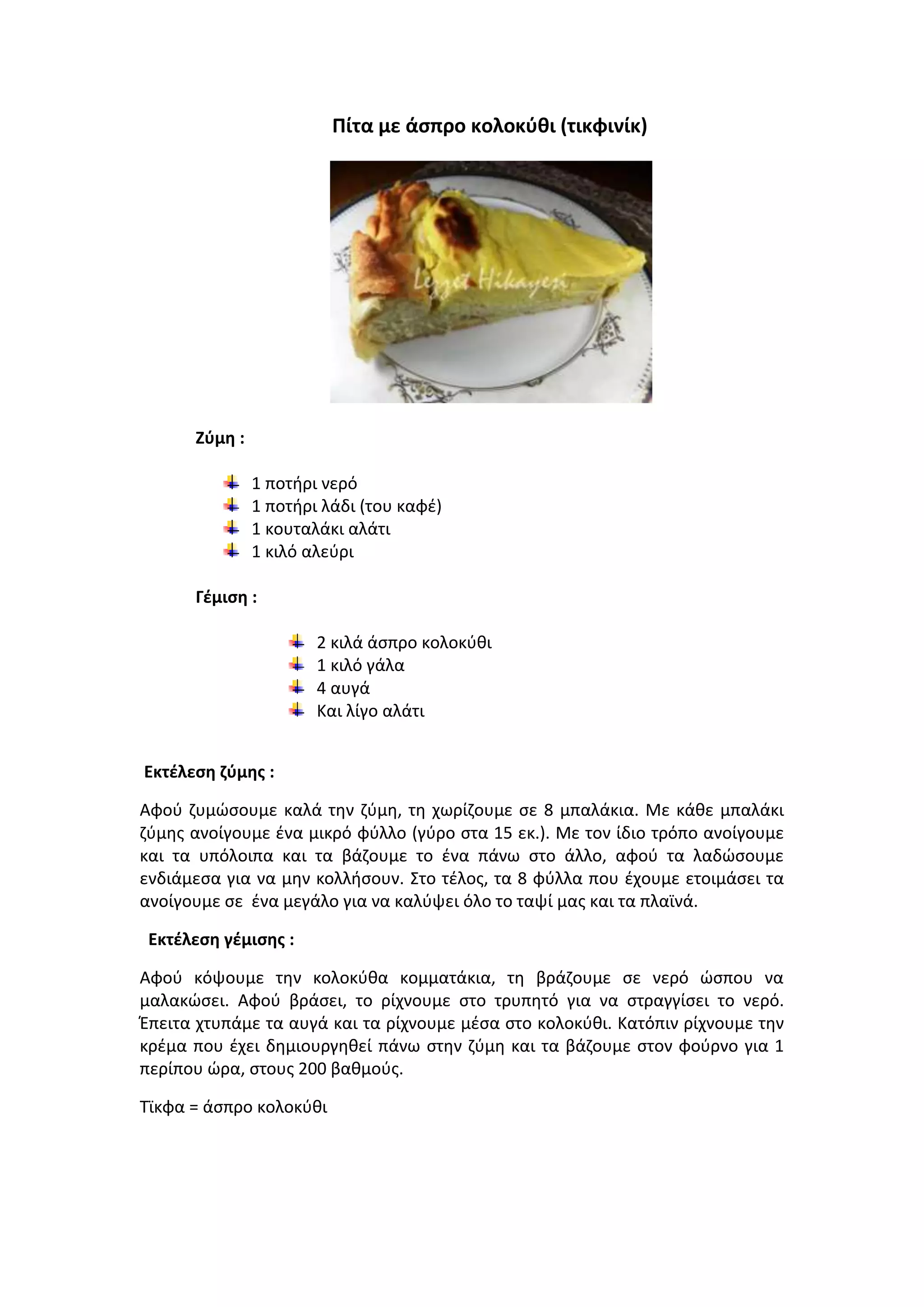 Πίτα με άςπροκολοκφκι (τικφινίκ)