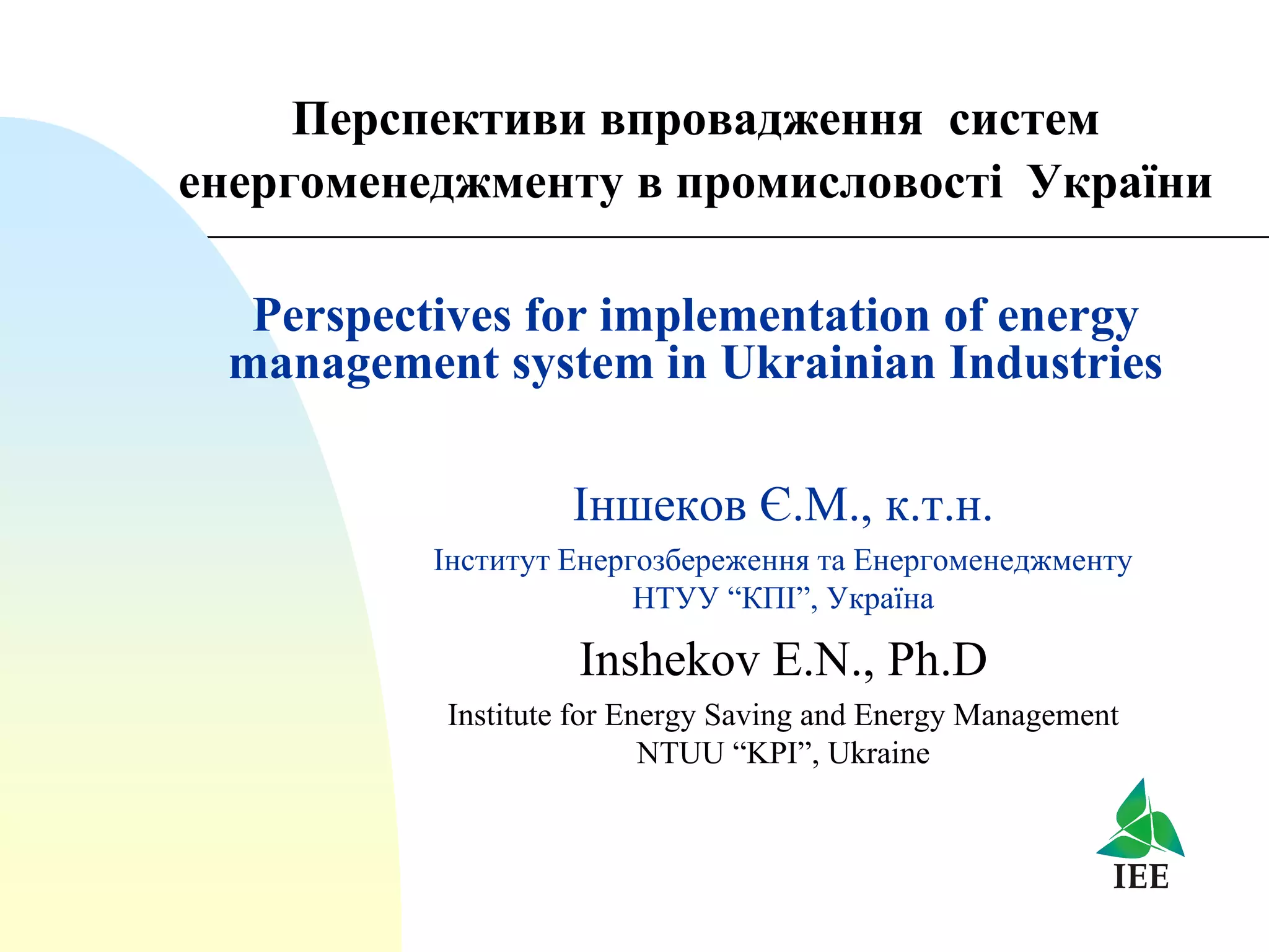 Документ рассматривает перспективы внедрения систем энергоменеджмента в украинской промышленности, акцентируя внимание на повышении энергоэффективности и необходимости адаптации международного опыта. В нем описаны ключевые элементы и структура энергоменеджмента, а также законодательства и стандарты, соответствующие этому направлению. Выводы подчеркивают важность подготовки специалистов и интеграции энергоменеджмента на различных уровнях для устойчивого развития экономики Украины.